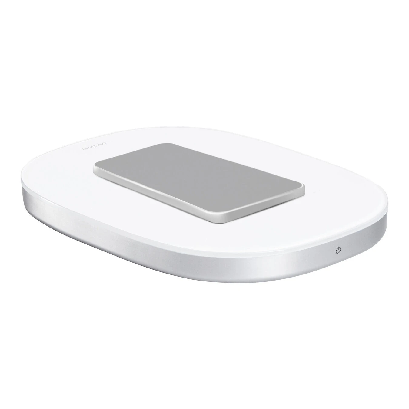 En vægt, der giver dig mere end blot præcist afmålte ingredienser: Den digitale køkkenvægt ZWILLING ENFINIGY i sølv med induktiv opladningsfunktion, f.eks. til smartphones, kombinerer smarte funktioner med nem håndtering.